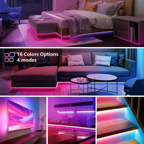 Ταινία Led με RGB φωτισμό που μπορεί να πάρει διάφορες αποχρώσεις συνδυάζοντας τα χρώματα, κόκκινο, πράσινο, μπλε. Η ταινία έχει αδιάβροχη προστασία βαθμού IP67 που προσφέρει πλήρη προστασία από πιτσιλιές, υδρατμούς, περιστασιακή υγρασία και μπορεί να τοποθετηθεί ακόμη και σε κουζίνες, μπάνια και εξωτερικούς χώρους. Στη συσκευασία περιλαμβάνεται εκτός από την ταινία και τηλεχειριστήριο με το οποίο μπορείτε να ελέγχετε το χρώμα και την ένταση.