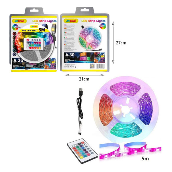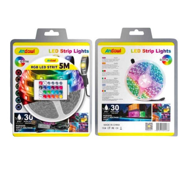 Andowl Αδιάβροχη Ταινία LED Τροφοδοσίας USB (5V) RGB Μήκους 5m και 6 LED ανά Μέτρο με Τηλεχειριστήριο Τύπου SMD5050 Q-DT50 – LED strip lights