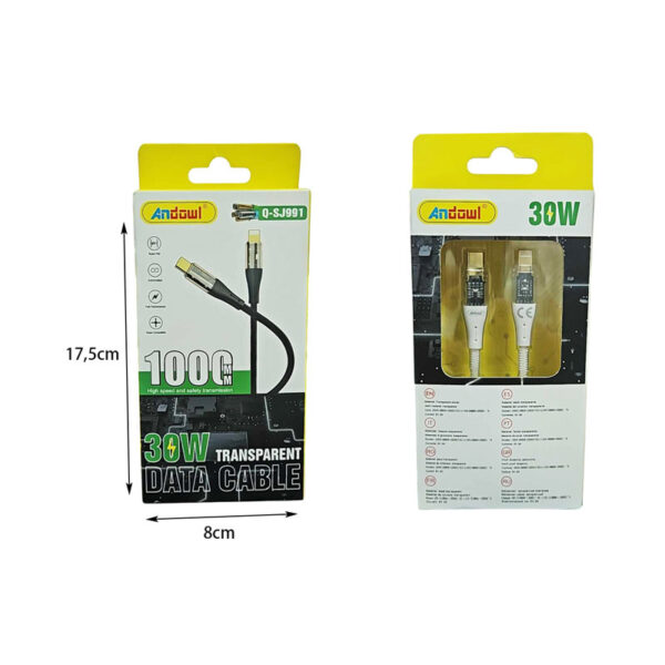 Andowl Διαφανές καλώδιο δεδομένων 30W Q-SJ991 – Transparent Data Cable