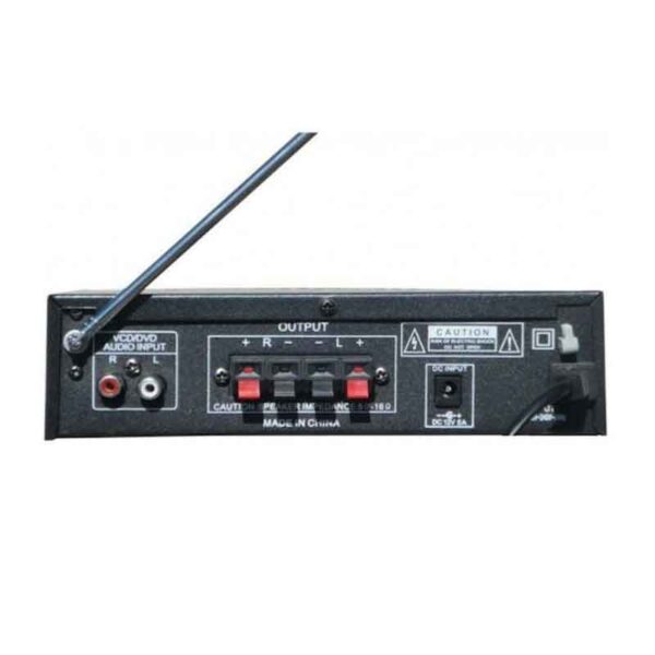 Ο ραδιοενισχυτής αυτός δέχεται USB, SD, διαθέτει Bluetooth, FM radio, διπλή είσοδο μικροφώνων, DC12 / AC220, χειριστήριο