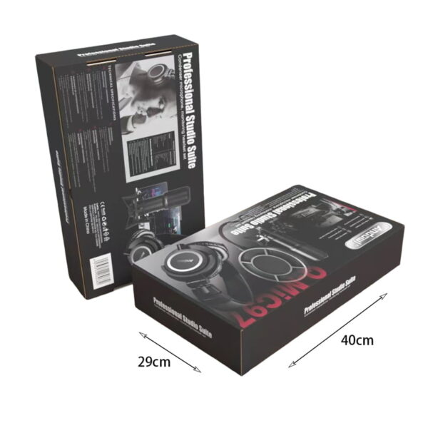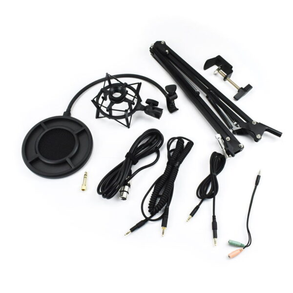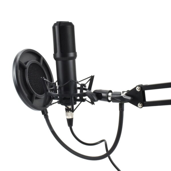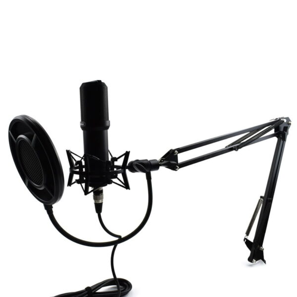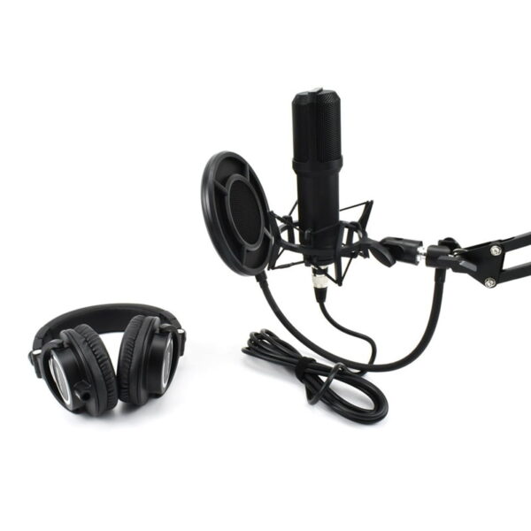 Επαγγελματικό μικρόφωνο ηχογράφισης και ακουστικά με αναδιπλούμενη βάση/βραχίονα και κλιπ για εγκατάσταση σε γραφείο ή τραπέζι. Συνοδεύεται με καλώδια, καθώς και φίλτρο και βαμβακερό κάλυμμα τα οποία το καθιστούν κατάλληλο για όλες τις περιπτώσεις ηχογράφισης, πχ για ραδιοφωνική εκπομπή, karaoke, ηχογράφιση για επεξεργασία στον υπολογιστή κλπ.