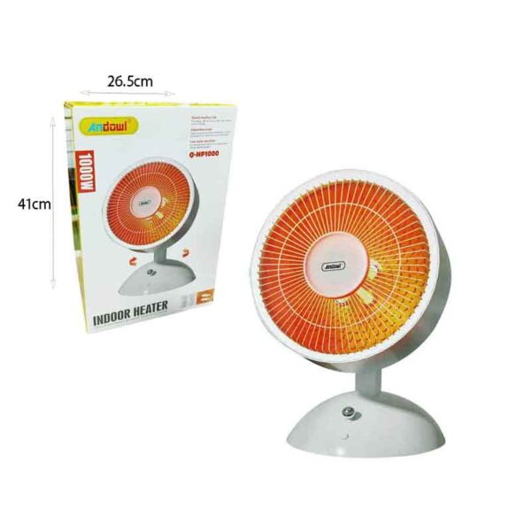 Ηλεκτρική θερμάστρα χαλαζία Andowl Q-NF1000 με ισχύ 1000W, ιδανική για εσωτερικούς χώρους. Παρέχει άμεση και ομοιόμορφη θέρμανση με χαμηλή κατανάλωση ρεύματος. Διαθέτει ανθεκτικό πλέγμα προστασίας και σταθερή βάση για ασφάλεια.