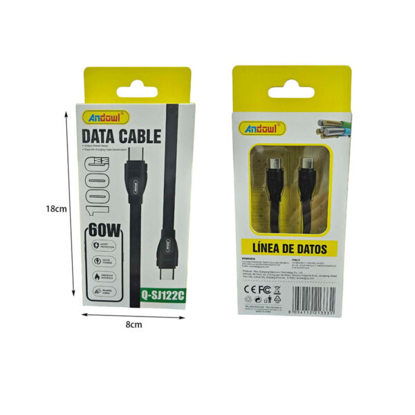 Andowl Καλώδιο δεδομένων Type C σε Type C 60W Q-SJ122C – Data Cable