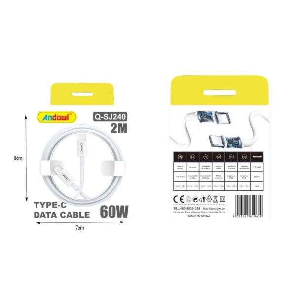 Andowl Καλώδιο φόρτισης και μεταφοράς δεδομένων Type-C to Type-C Q-SJ240 – Data Cable