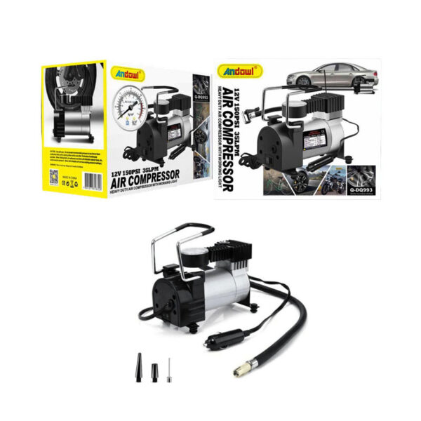 Andowl Κομπρεσέρ αέρος με καλώδιο αναπτήρα 12V και ενσωματωμένο φως Q-DQ993 – Air Compressor