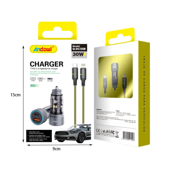 Andowl Φορτιστής αυτοκινήτου με καλώδιο Type-C σε Lighting Q-DC50B – Charger