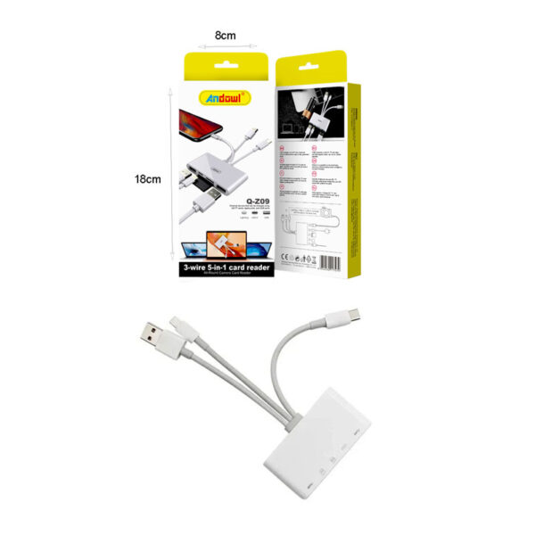 Andowl 5 σε 1 Lightning+Type C+USB A Card Reader με 3 Καλώδια Andowl Q-Z09 – 3-wire 5 in 1 card reader Q-Z09