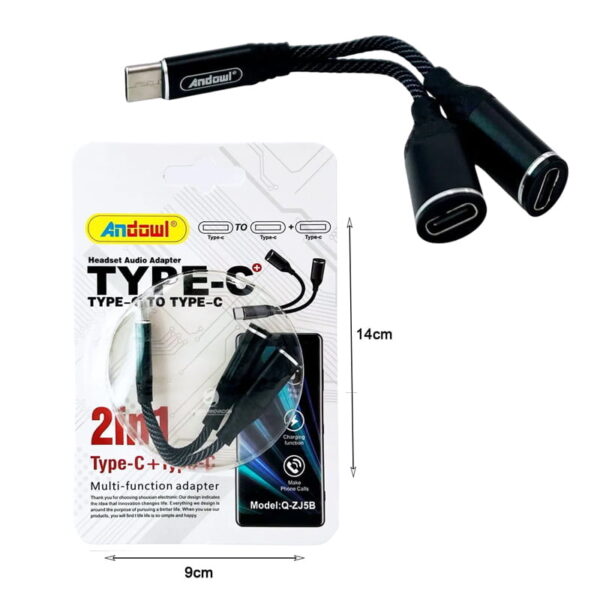 Andowl Q-ZJ5B Μετατροπέας Αντάπτορας Type-C male σε Type-C 2x female – Type-C male to Type-C 2x female Cable Adapter