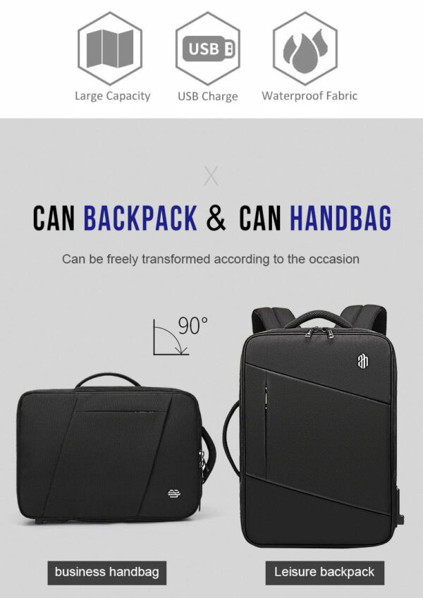 ARCTIC HUNTER τσάντα πλάτης B00345 με θήκη laptop 15.6", USB, 19-32L, μαύρη