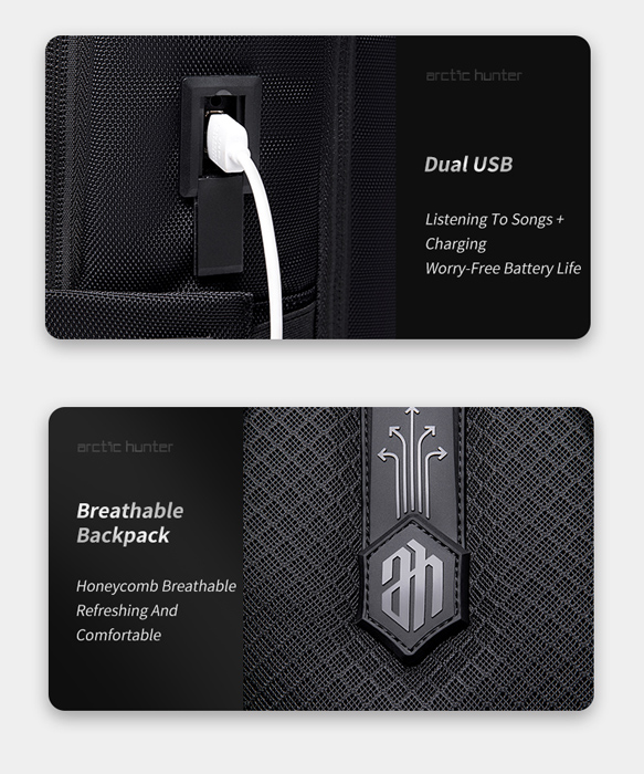 ARCTIC HUNTER τσάντα πλάτης B00490 με θήκη laptop 15.6", 27L, USB, μαύρη