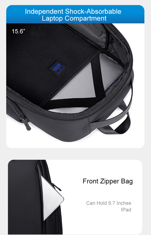 ARCTIC HUNTER τσάντα πλάτης B00554 με θήκη laptop 15.6", 20L, USB, μαύρη