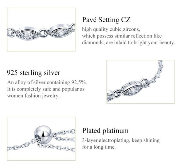 Κατασκευάζεται από ασήμι 925 με επιπλατίνωμα και διαθέτει κρίκους αυξομείωσης ώστε να το ρυθμίσετε στην επιθυμητή θέση.