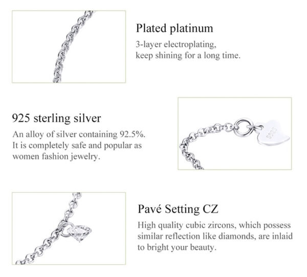 Κατασκευάζεται από ασήμι 925 με επιπλατίνωμα και διαθέτει κρίκους αυξομείωσης ώστε να το ρυθμίσετε στην επιθυμητή θέση.