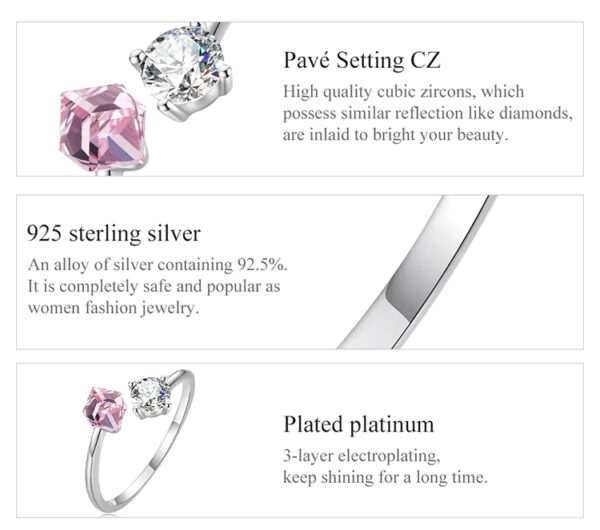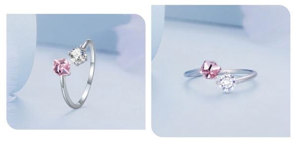 Εντυπωσιακό δαχτυλίδι διακοσμημένο με αστραφτερή κυβική ζιρκόνια, λευκού και ροζ χρώματος, η οποία αντανακλά μοναδικά το φως και προσφέρει λάμψη στο κόσμημα.