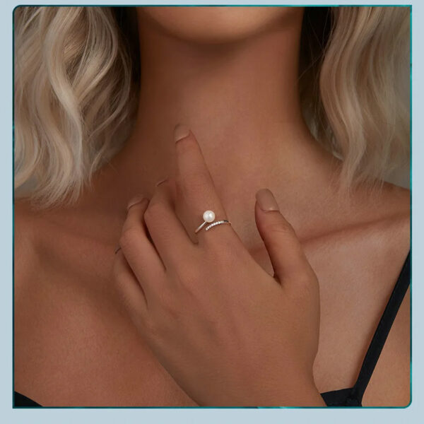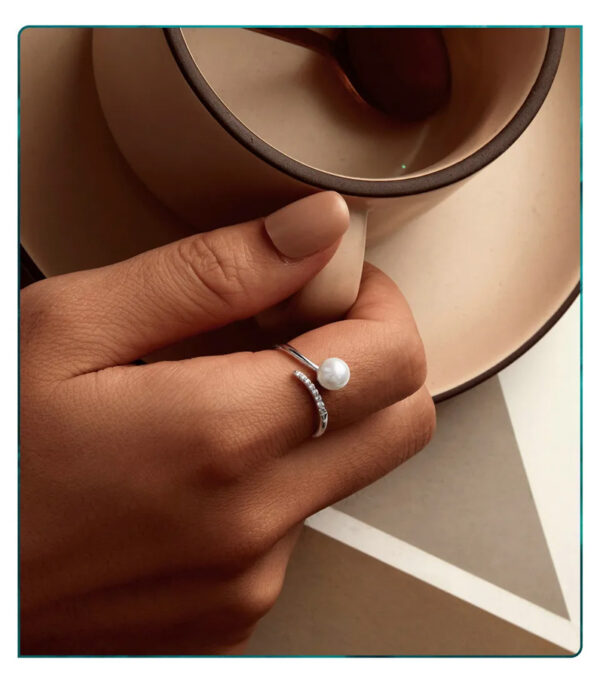 Κομψό δαχτυλίδι, διακοσμημένο με αστραφτερή κυβική ζιρκόνια και εντυπωσιακή, λευκή πέρλα.
