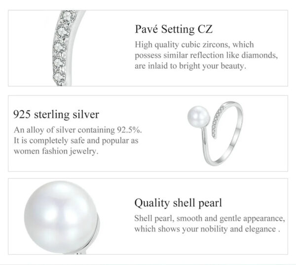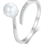 BAMOER δαχτυλίδι BSR497-E με πέρλα & ζιρκόνια, ανοιγόμενο, ασήμι 925