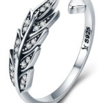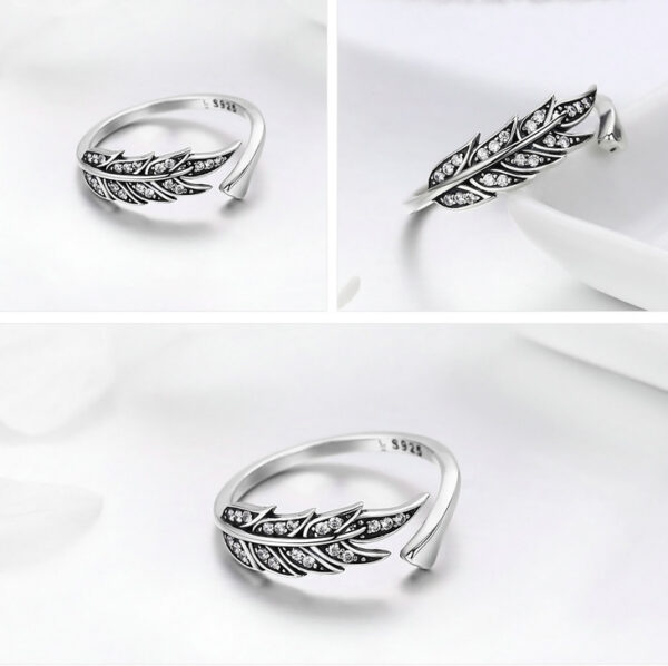 Κομψό δαχτυλίδι σε σχέδιο φτερού, διακοσμημένο με αστραφτερή κυβική ζιρκόνια, λευκού χρώματος, η οποία προσφέρει μοναδική λάμψη στο κόσμημα.