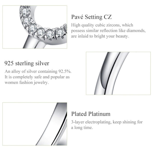 BAMOER δαχτυλίδι SCR545 με κυβική ζιρκόνια, ανοιγόμενο, ασήμι 925, ασημί