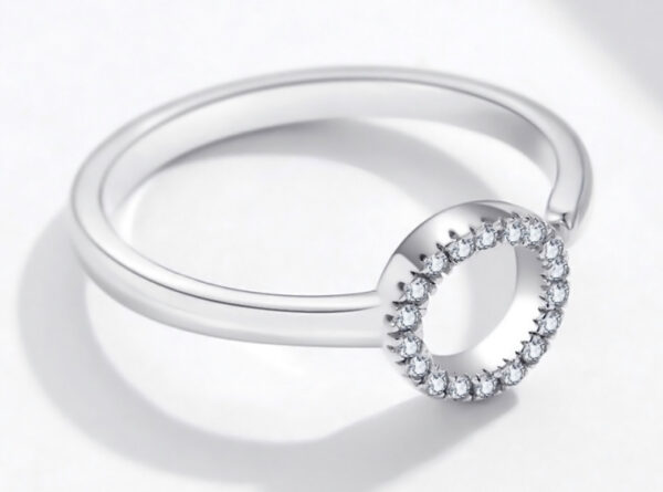 Κομψό δαχτυλίδι, διακοσμημένο με αστραφτερή κυβική ζιρκόνια, λευκού χρώματος.