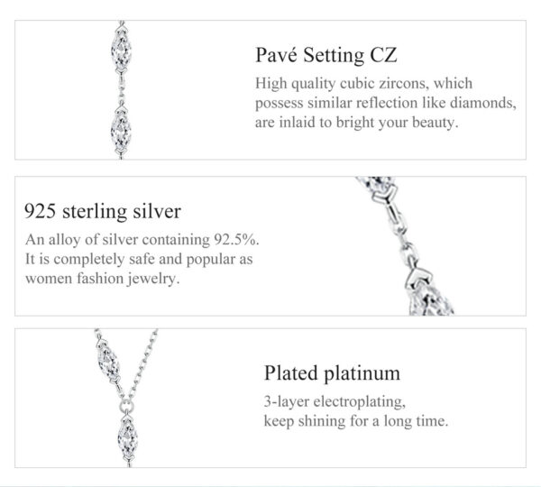 BAMOER κολιέ BSN330 με κυβική ζιρκόνια, ασήμι 925, ασημί