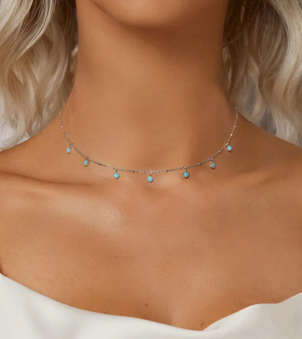 Εντυπωσιακό κολιέ Bamoer, με ιδιαίτερο και μοναδικό design. Διαθέτει ασημί αλυσίδα, διακοσμημένη με συνθετικές τιρκουάζ χάντρες.