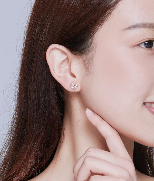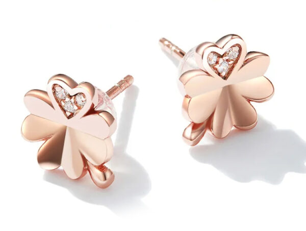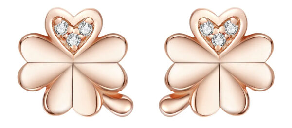 Εντυπωσιακό σκουλαρίκια Bamoer σε σχήμα τετράφυλλο τριφύλλι, κατασκευασμένα από ασήμι 925, σε ροζ χρυσό χρώμα, διακοσμημένα με αστραφτερή κυβική ζιρκόνια η οποία αντανακλά μοναδικά το φως και προσφέρει λάμψη στο κόσμημα.