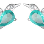 Καρφωτά σκουλαρίκια με σχήμα πουλιού Bamoer, κατασκευασμένα από ασήμι 925, διακοσμημένα με διάφανο κρύσταλο βεραμάν χρώματος και αστραφτερή κυβική ζιρκόνια λευκού χρώματος.