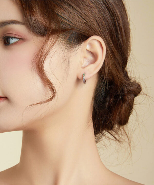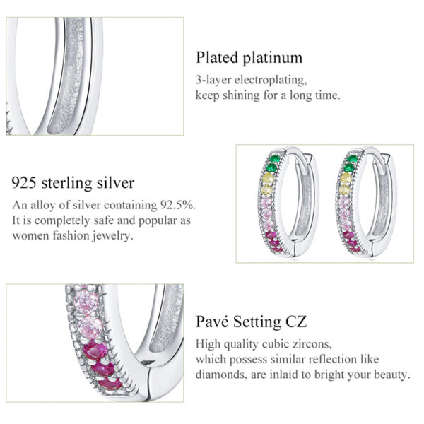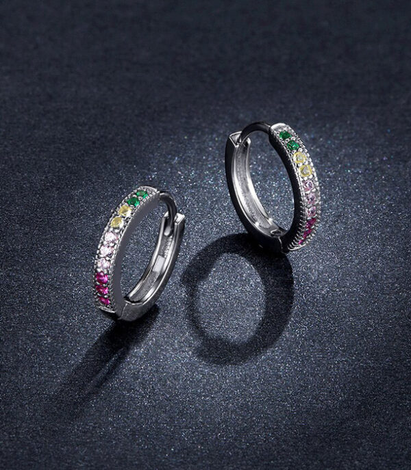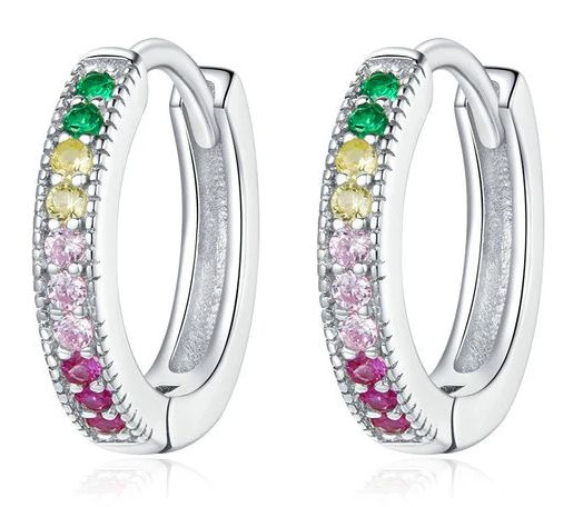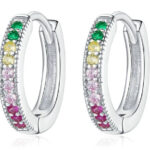 Εντυπωσιακά σκουλαρίκια κρίκοι, σε ασημί χρώμα, διακοσμημένο με κυβική ζιρκόνια σε εντυπωσιακά χρώματα που προσφέρει εξαιρετική λάμψη στο κόσμημα.