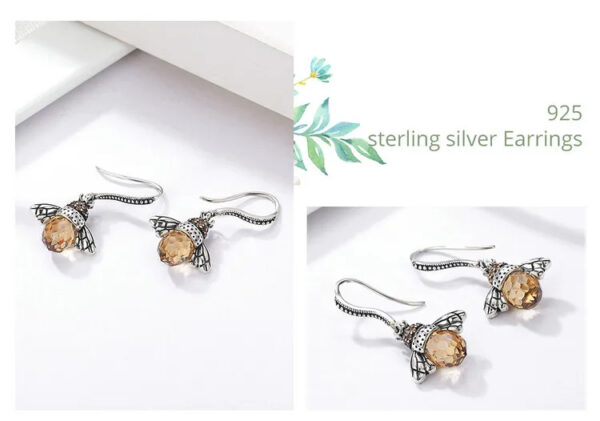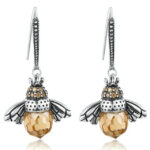 Κομψά, κρεμαστά σκουλαρίκια Bamoer κατασκευασμένα από ασήμι 925, επιπλατινωμένα, σε εντυπωσιακό σχέδιο μέλισσας, διακοσμημένα με κυβική ζιρκόνια.