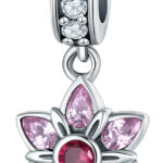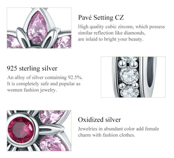 Υπέροχο charm τύπου Pandora, για βραχιόλι/κολιέ της Bamoer, με μοντέρνο σχεδιασμό σε σχήμα λουλουδιού, κατασκευασμένο από ασήμι 925, διακοσμημένο με αστραφτερή κυβική ζιρκόνια λευκού και ροζ χρώματος.