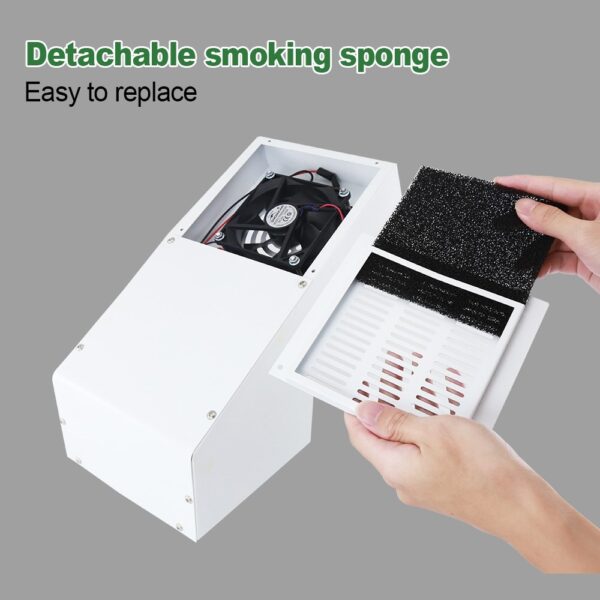 Σταθμός συγκόλλησης με LED φως και σταθμό απορρόφησης καπνού, ο οποίος προστατεύει από τις αναθυμιάσεις, διευκολύνοντας την εργασία.