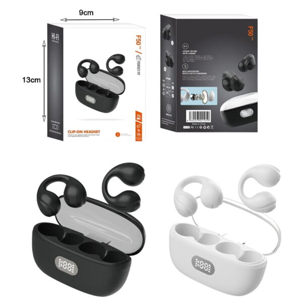 Bluetooth Handsfree Ακουστικά με Θήκη Φόρτισης F50 TWS – Wireless bluetooth earphones clip-on headset