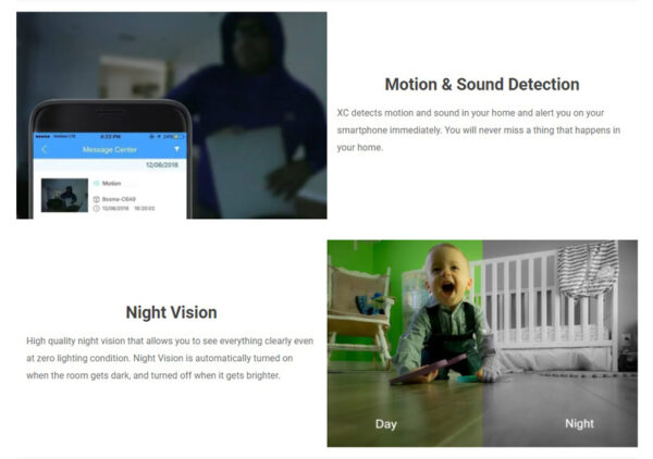 Εξοπλίζεται με ηχείο και μικρόφωνο, για την αμφίδρομη επικοινωνία με τα άτομα που βρίσκονται στον χώρο, και με σειρήνα 100dB. Υποστηρίζει ανίχνευση κίνησης και ήχου με άμεσες ειδοποιήσεις στο smartphone σας για κάθε φορά που ανιχνεύσει κίνηση και ήχο.