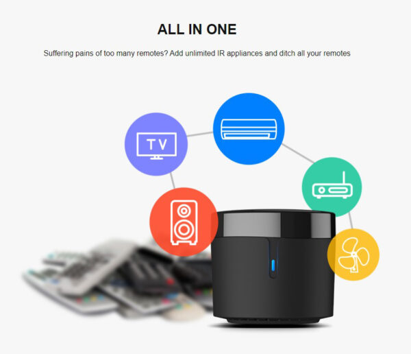 Σύστημα τηλεχειρισμού ηλεκτρικών συσκευών της BroadLink 4ης γενιάς, σε ενημερωμένη έκδοση με πιο συμπαγές μέγεθος, μεγαλύτερη συμβατότητα και καλύτερη απόδοση. Υποστηρίζει 50.000+ ελεγχόμενες IR συσκευές, όπως τηλεόραση, STB, DVD, κλιματιστικό, ανεμιστήρα, συσκευή εγγραφής βίντεο, ηχεία κ.α. Επιπλέον υποστηρίζει εξωτερική ανίχνευση θερμοκρασίας και υγρασίας του χώρου όπου βρίσκεται η συσκευή. Λειτουργεί με IFTTT, Alexa και Google Assistant.