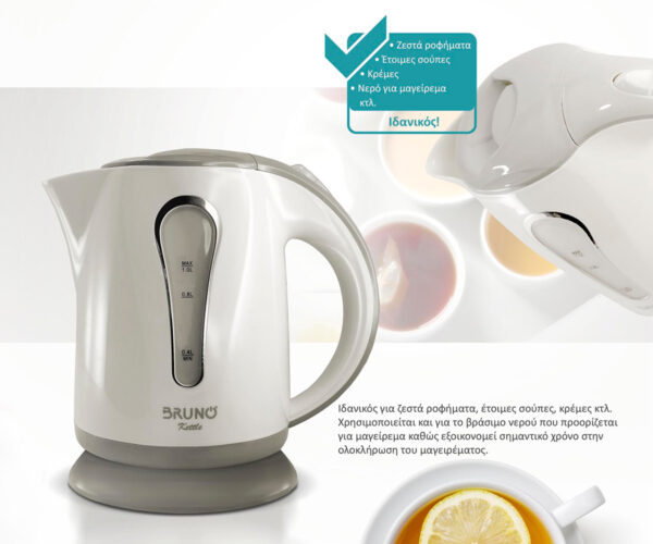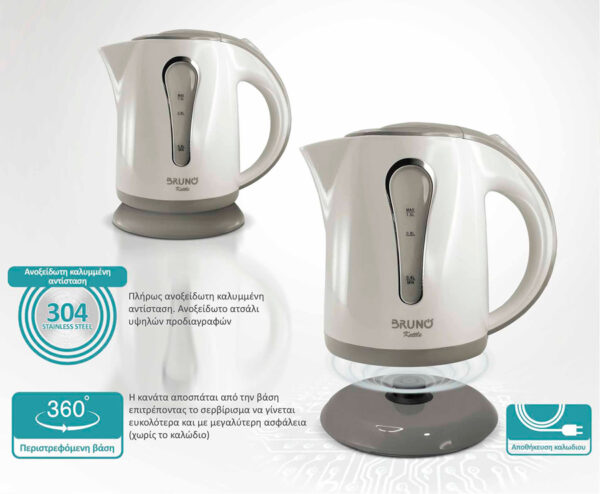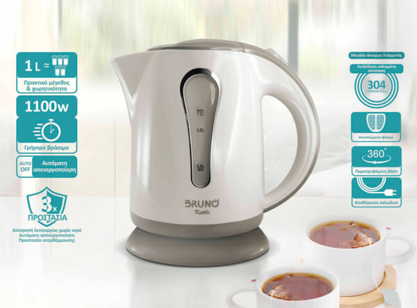 BRUNO βραστήρας νερού BRN-0141, 1L, 1100W, λευκό-γκρι