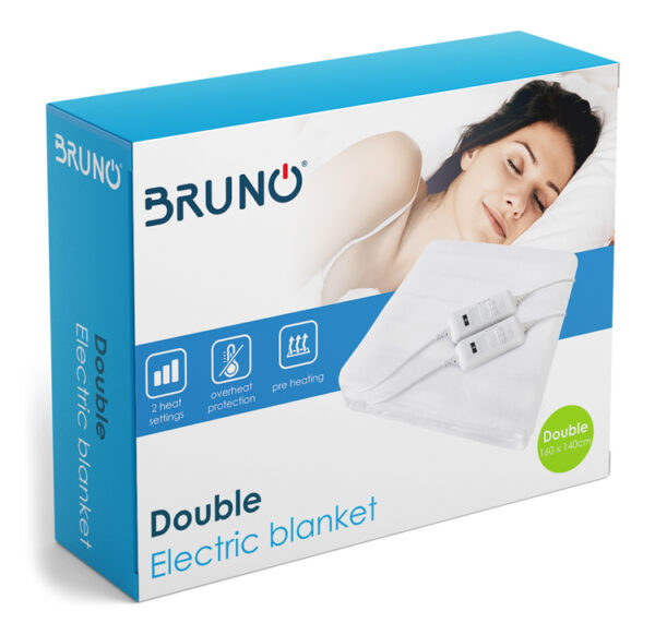 Ηλεκτρική κουβέρτα εξαιρετικής απόδοσης της BRUNO με ισχύ 2x 60w και 2 επίπεδα θερμοκρασίας. Εξοπλίζεται με εύχρηστα, αποσπώμενα χειριστήρια με δυνατότητα επιλογής διαφορετικού επιπέδου Θερμοκρασίας σε κάθε πλευρά και διαθέτει προστασία από την υπερθέρμανση.