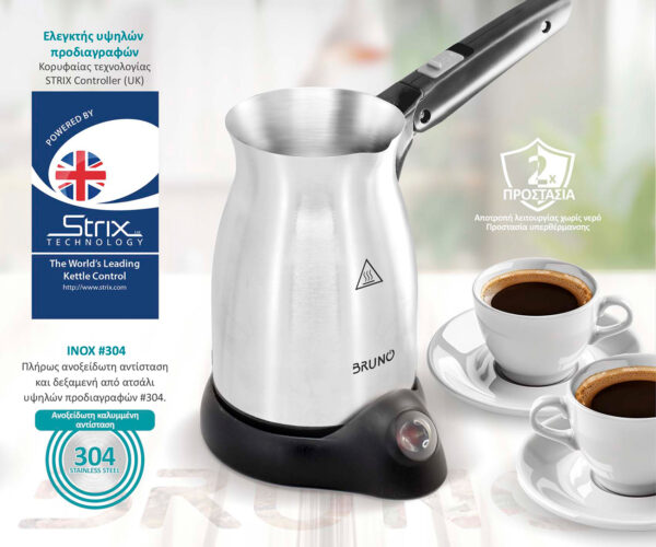 Το ηλεκτρικό μπρίκι BRUNO BRN-0041 είναι ιδανικό για εύκολη και γρήγορη ετοιμασία του αγαπημένου σας Ελληνικού καφέ καθώς και για το ζέσταμα νερού για άλλα ζεστά ροφήματα, έτοιμες σούπες, κρέμες κτλ.