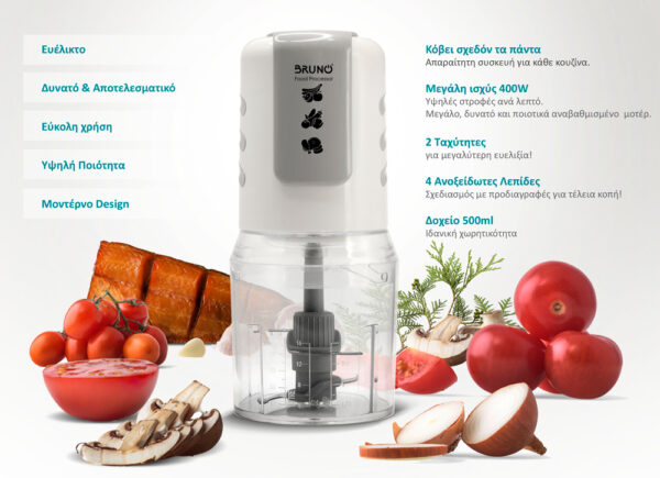 BRUNO πολυκόπτης BRN-0082, 2 ταχύτητες, 400W, 500ml, 4 λεπίδες, λευκός
