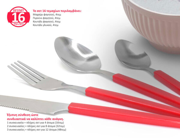 BRUNO σετ μαχαιροπίρουνα ανοξείδωτα Accorto, κόκκινο, 16τμχ