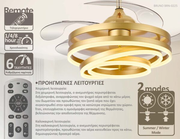 BRUNO BRN-0225 Ανεμιστήρας οροφής με LED φως, AC 122W, 42", O107x47εκ., χρυσός