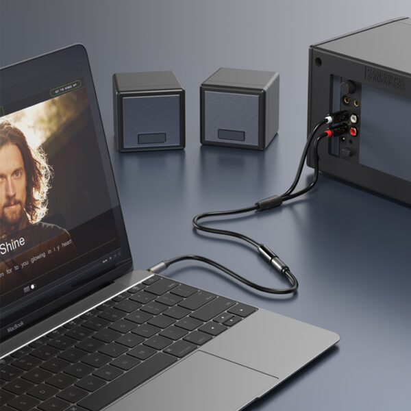 CABLETIME καλώδιο ήχου 3.5mm σε 2x RCA CT-H12G, 20cm, μαύρο