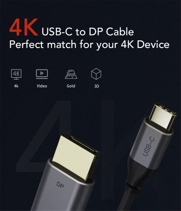 CABLETIME καλώδιο USB-C σε DisplayPort CT-CMDP2, 4K/60Hz, 1.8m, μαύρο