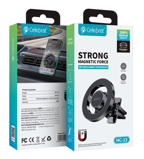 CELEBRAT βάση smartphone αυτοκινήτου HC-13, αεραγωγού, μαγνητική, μαύρη
