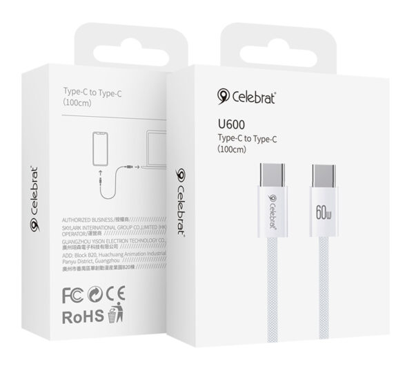 CELEBRAT καλώδιο USB-C U600, 60W, 480Mbps, 1m, λευκό