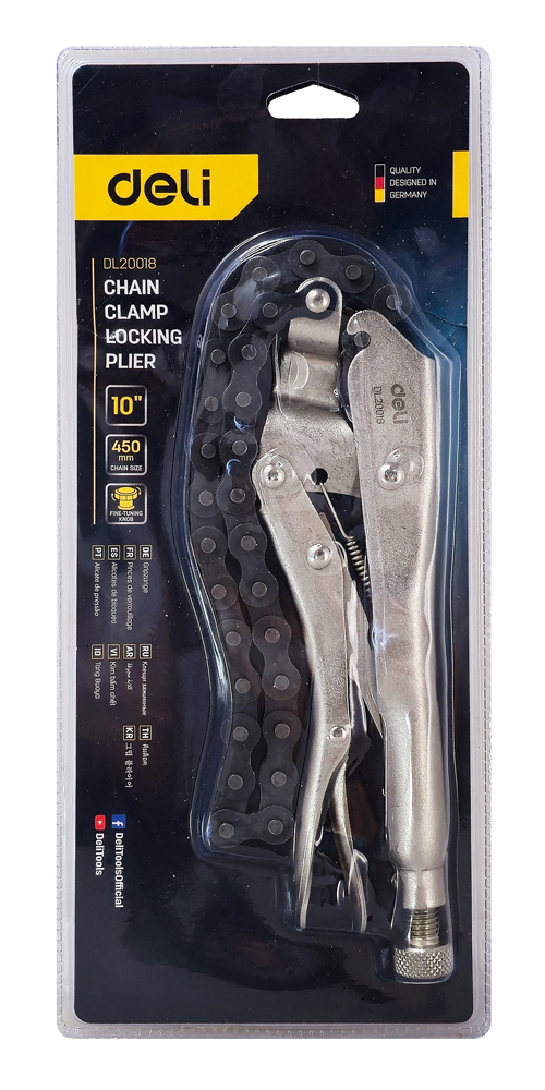 Αλυσοκάβουρας της Deli ιδανικός για συγκράτηση ή περιστροφή σωλήνων και κυλινδρικών αντικειμένων με ασφάλεια και σταθερότητα. Διαθέτει βίδα ρύθμισης και λεβιέ γρήγορης απασφάλισης.