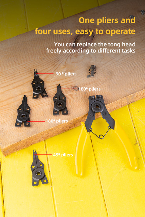 Ασφαλειοτσίμπιδο της Deli με 4 κεφαλές, κατάλληλες για διαφορετική χρήση.