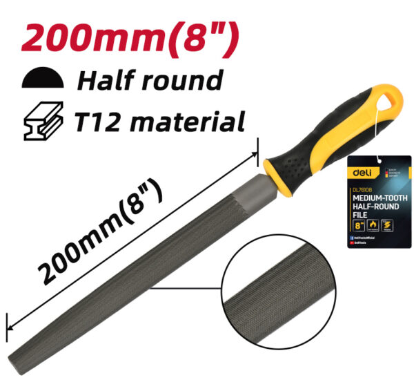DELI λίμα ημιστρόγγυλη DL76108 με αντιολισθητική λαβή, μετάλλου, 200mm