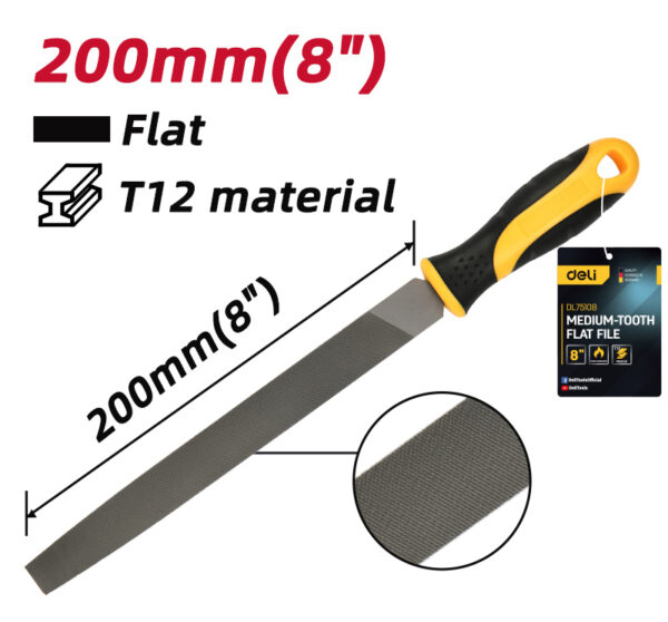 DELI λίμα πλατιά DL75108 με αντιολισθητική λαβή, μετάλλου, 200mm