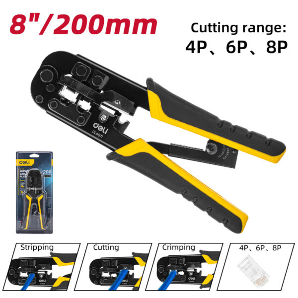 DELI πρέσα ακροδεκτών καλωδίων δικτύου DL4971, 4P/6P/8P, 200mm