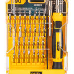 Σετ κατσαβιδιών ακριβείας της Deli το οποίο αποτελείται από 2 κατσαβίδια, 2 επεκτάσεις και 61 διαφορετικές κεφαλές και εξαρτήματα κατσαβιδιού.